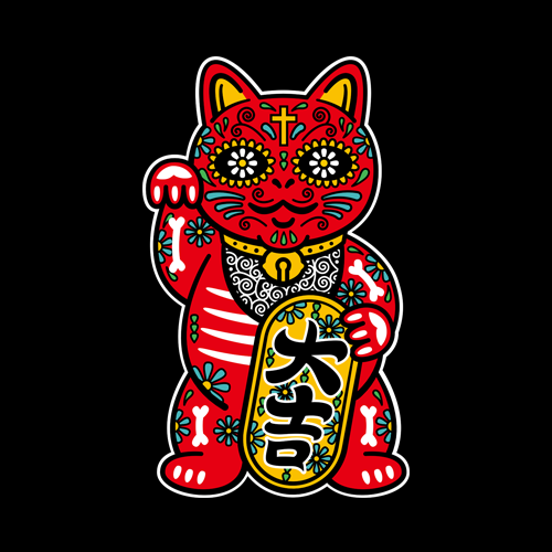 Lucky Cat Sugar Skull Dia De Los Muertos Day of the Dead